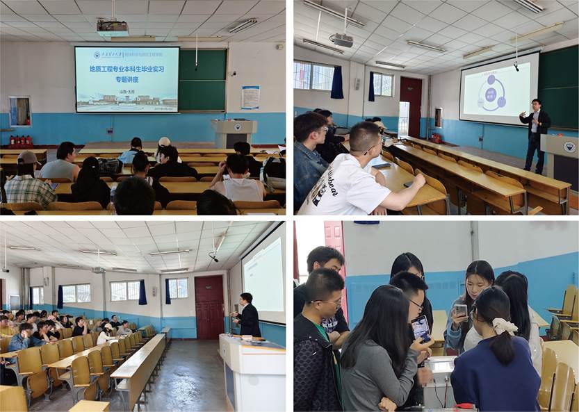 理论教学环节,地质工程系精心打造了系列精品讲座,例如余传涛副教授主讲的“高密度电阻率法原理及工程应用”专题讲座,系统阐释了物探技术的最新发展,详细展示了仪器设备的工程应用场景及应用方法;莫平开设的“黄土边坡多场耦合监测技术”专题讲座,深入讲解了水分场、温度场、应力场的协同监测理论与方法,并系统介绍了相关工程案例与应用成效;关帆帆博士则聚焦“黄土斜坡工程响应机制”,揭示了形变热响应的内在规律。相关讲座紧密契合野外实践内容,为实践教学奠定了坚实的理论基础。